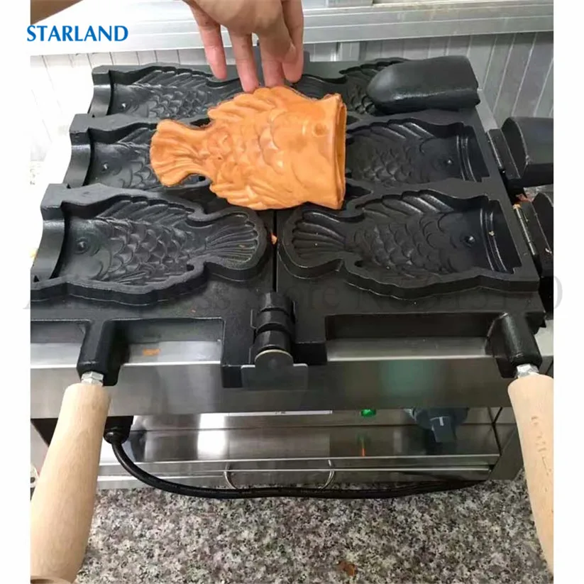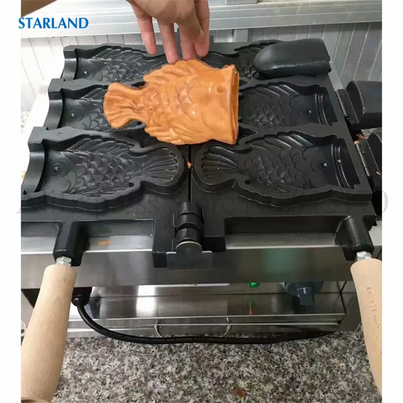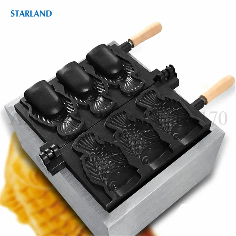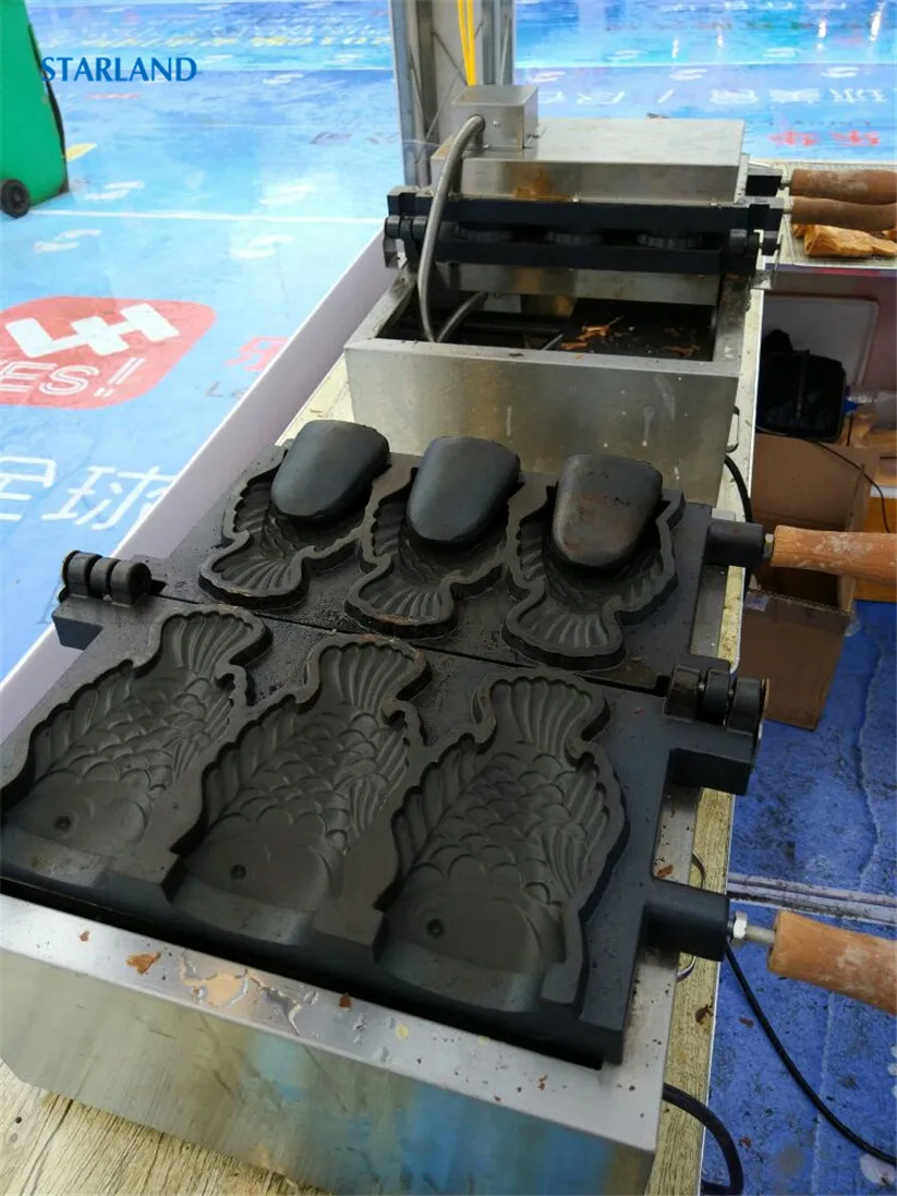 Магазин продавца: Starland24 Snack Catering Equipment Store Рыба с открытым ртом в форме льда Crean конус вафельный Taiyaki машина коммерческий антипригарный 2000 Вт 220 В 110 В Технические деталиМодель: FY-1103BНапряжение частота 220V ~ 240V/50Hz (по желанию, 110 В/60 Гц)Мощность 2000 ВтРазмеры 585x375x265ммРазмер тайяки 150х90х40ммN.W. 19,5 кгДиапазон температур: 50 ~ 300 градусов по Цельсию3 шт формы в одном наборе.Основание из нержавеющей стали ОсобенностиФорма для торта в форме рыбы в японском стиле, новый дизайн формы Taiyaki, 3 шт формы в одном наборе.Антипригарная поверхность для приготовления пищи, качественные формы для тефлонового покрытия.Регулируемый механический термостат, от 50 до 300 градусов по Цельсию.С таймером и автоматическим режимом, 3 ~ 5 минут, чтобы сделать одну партию Taiyaki, легко работать и чистить.Прочная основа из нержавеющей стали с роскошным дизайном внешнего вида, безопасная цельная конструкция.Выпечки Taiyaki Вафли с независимым контролем тепла и алюминиевых форм с высокой теплопроводностью.Корпус печи из нержавеющей стали с деревянной теплоизолированной ручкой.С преимуществами очистки, канализации, простоты в эксплуатации и энергосбережения.Этот продукт может широко применяться для коммерческого использования и тяжелых условий в организации, школе, кафетерии, отдельных ресторанах в кафе, чайных магазинах, уличных продавцах, дома и т. д. Что такое Taiyaki?1.Taiyaki-это японский торт в форме рыбы. Наиболее распространенным наполнением является Красная бобовая паста, которая изготовлена из подслащенных бобы азуки. Другие обычные наполнители могут быть заварным кремом, шоколадом или сыром. Некоторые магазины даже продают тайяки с окономияки, наполнением гёзы или колбасой внутри.2.Taiyaki изготавливается с использованием стандартного Блинного или вафельного теста. Тесто выливается в форму в форме рыбы для каждой стороны. Затем наполнитель кладется на одну сторону, а форма закрыта. Затем готовят с обеих сторон до золотисто-коричневого цвета.3.Taiyaki был впервые испечен в сладком магазине Naniwaya в Azabu, Токио в 1909 году, и теперь можно найти по всей Японии, особенно на продовольственных площадках супермаркетов и японских фестивалей.