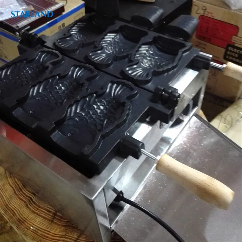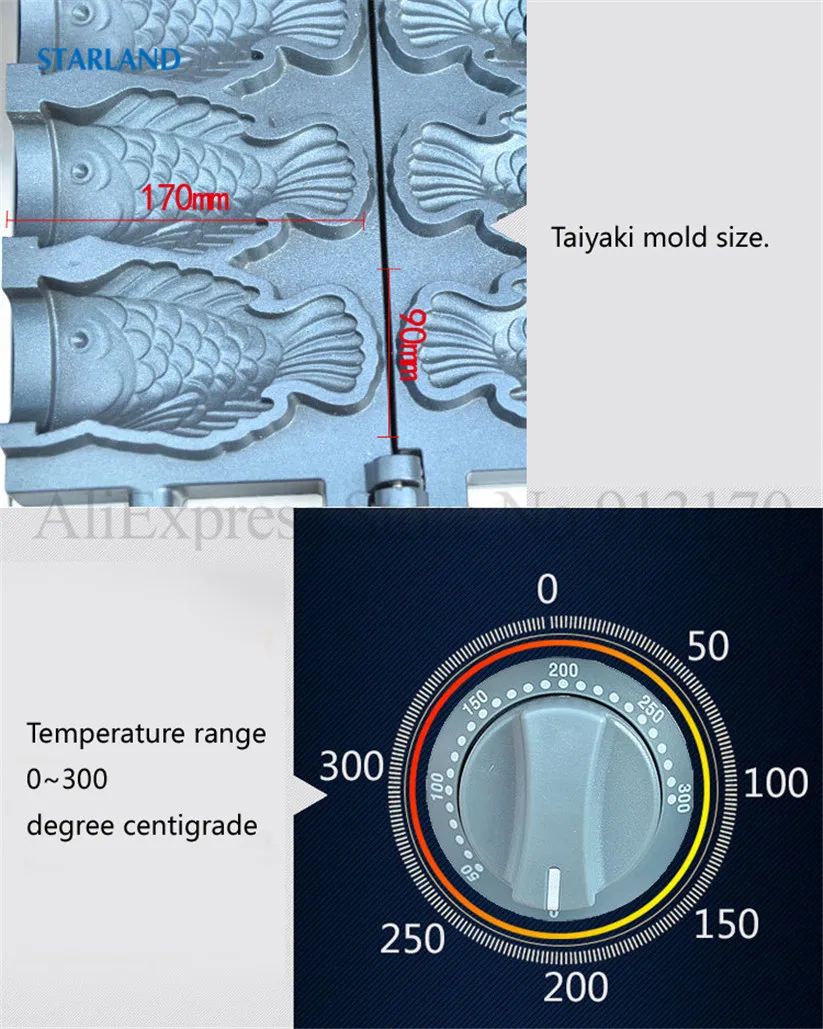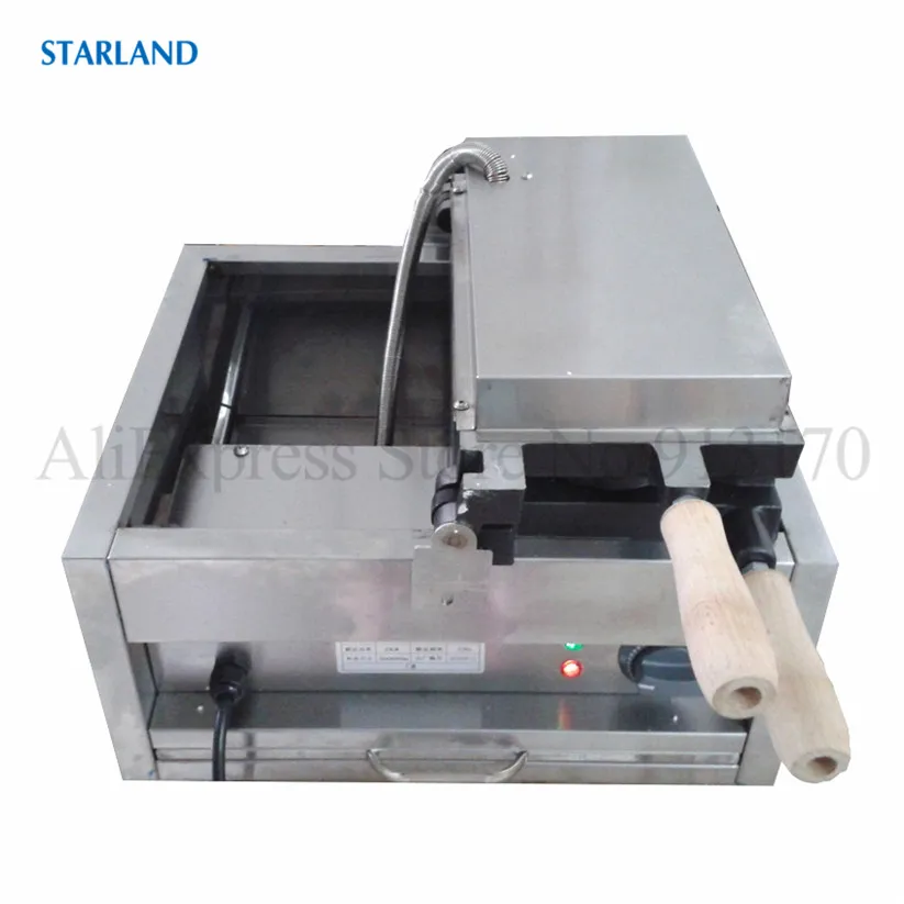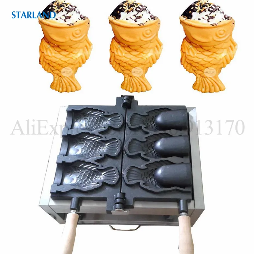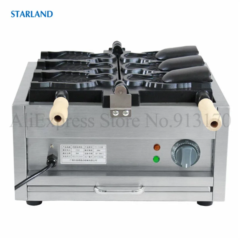 Магазин продавца: Starland24 Snack Catering Equipment Store Рыба с открытым ртом в форме льда Crean конус вафельный Taiyaki машина коммерческий антипригарный 2000 Вт 220 В 110 В Технические деталиМодель: FY-1103BНапряжение частота 220V ~ 240V/50Hz (по желанию, 110 В/60 Гц)Мощность 2000 ВтРазмеры 585x375x265ммРазмер тайяки 150х90х40ммN.W. 19,5 кгДиапазон температур: 50 ~ 300 градусов по Цельсию3 шт формы в одном наборе.Основание из нержавеющей стали ОсобенностиФорма для торта в форме рыбы в японском стиле, новый дизайн формы Taiyaki, 3 шт формы в одном наборе.Антипригарная поверхность для приготовления пищи, качественные формы для тефлонового покрытия.Регулируемый механический термостат, от 50 до 300 градусов по Цельсию.С таймером и автоматическим режимом, 3 ~ 5 минут, чтобы сделать одну партию Taiyaki, легко работать и чистить.Прочная основа из нержавеющей стали с роскошным дизайном внешнего вида, безопасная цельная конструкция.Выпечки Taiyaki Вафли с независимым контролем тепла и алюминиевых форм с высокой теплопроводностью.Корпус печи из нержавеющей стали с деревянной теплоизолированной ручкой.С преимуществами очистки, канализации, простоты в эксплуатации и энергосбережения.Этот продукт может широко применяться для коммерческого использования и тяжелых условий в организации, школе, кафетерии, отдельных ресторанах в кафе, чайных магазинах, уличных продавцах, дома и т. д. Что такое Taiyaki?1.Taiyaki-это японский торт в форме рыбы. Наиболее распространенным наполнением является Красная бобовая паста, которая изготовлена из подслащенных бобы азуки. Другие обычные наполнители могут быть заварным кремом, шоколадом или сыром. Некоторые магазины даже продают тайяки с окономияки, наполнением гёзы или колбасой внутри.2.Taiyaki изготавливается с использованием стандартного Блинного или вафельного теста. Тесто выливается в форму в форме рыбы для каждой стороны. Затем наполнитель кладется на одну сторону, а форма закрыта. Затем готовят с обеих сторон до золотисто-коричневого цвета.3.Taiyaki был впервые испечен в сладком магазине Naniwaya в Azabu, Токио в 1909 году, и теперь можно найти по всей Японии, особенно на продовольственных площадках супермаркетов и японских фестивалей.